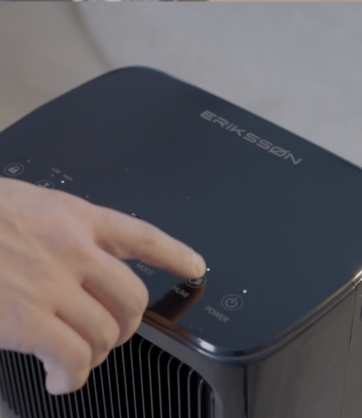 In tegenstelling tot andere ontvochtigers die de luchtvochtigheid met een LED-indicatie aangeven, heeft de Erikssøn luchtontvochtiger een ingebouwde real-time Hygrometer. Hiermee weet jij exact wat de huidige vochtigheidsgraad is. In combinatie met de "humidity" functie kan jij jouw kamer op een constant luchtvochtigheidspercentage houden.