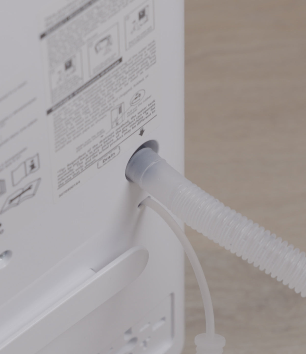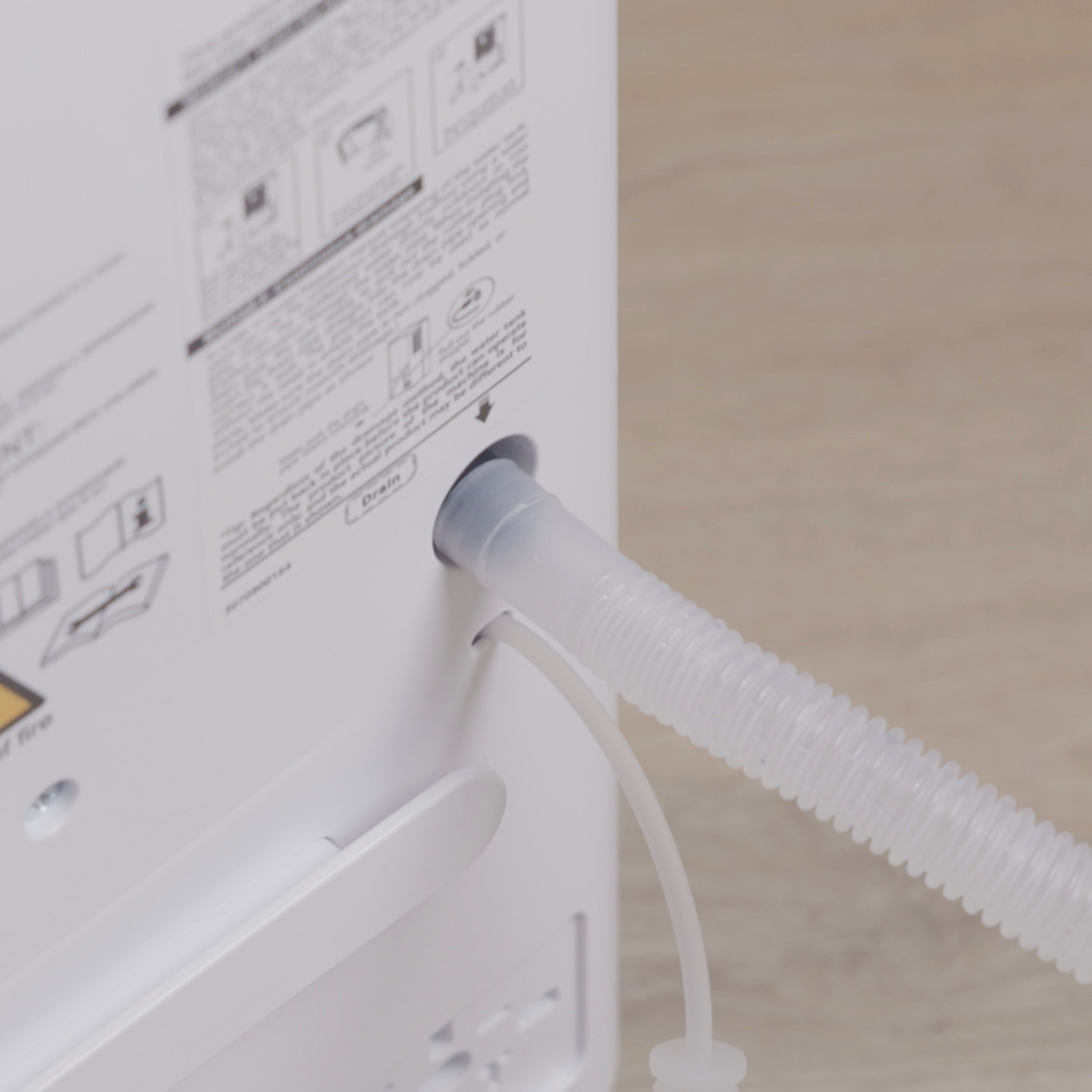Kies voor continue afvoer en voorkom het constant legen van de waterbak in geval van een hoge vochtigheidsgraad.