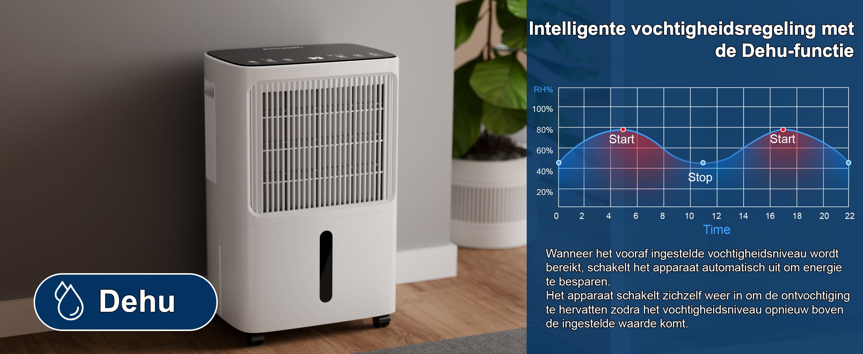 Een luchtontvochtiger helpt bij het verbeteren van de luchtkwaliteit in een binnenklimaat. Vooral in het geval van vocht- en allergie problemen. Het kan schimmel, huisstofmijt en andere allergenen helpen verminderen door de luchtvochtigheid te verlagen. Met de real-time Hygrometer weet je zeker dat jouw kamer een gezond vochtigheidspercentage heeft.
