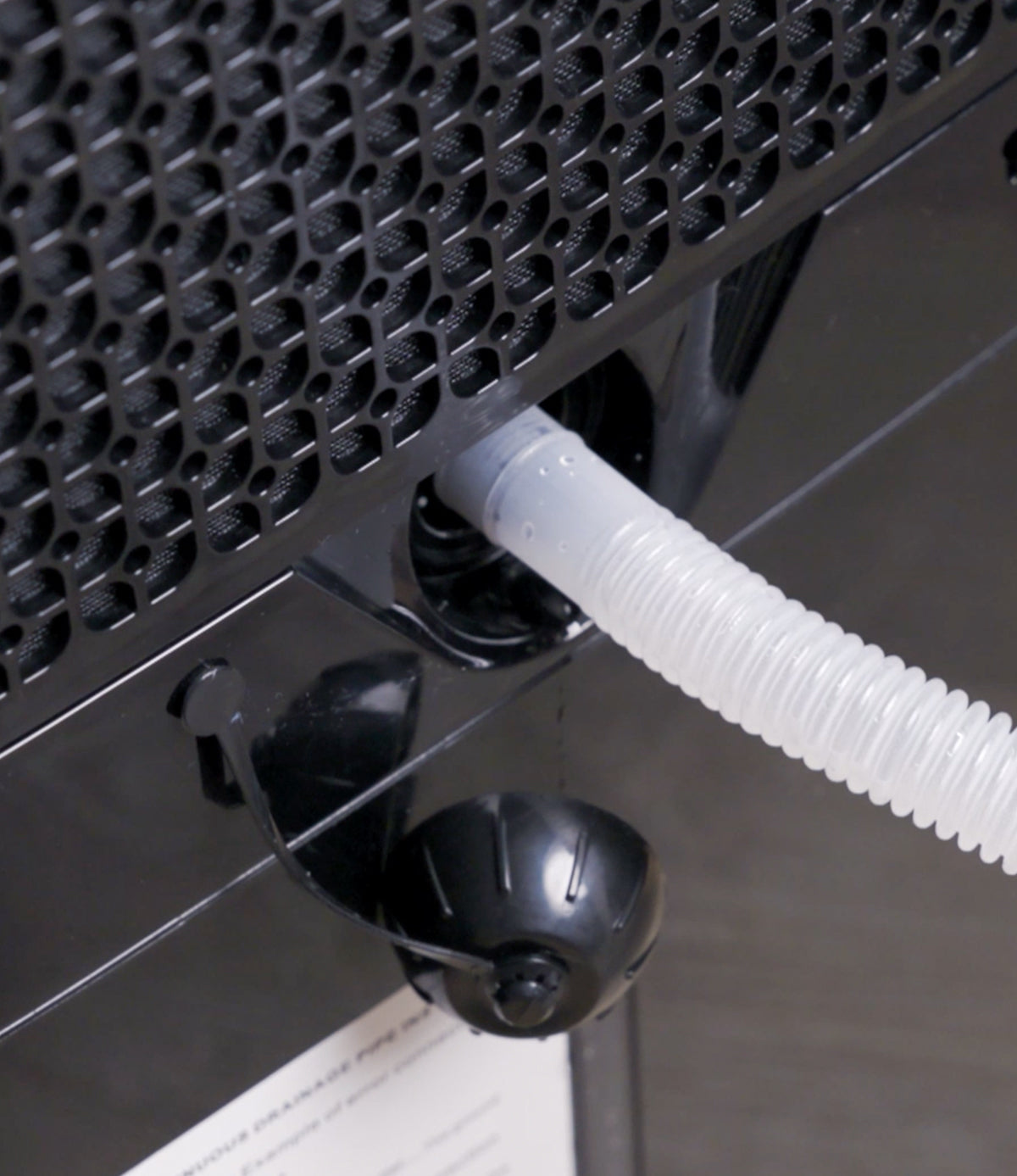 Kies voor continue afvoer en voorkom het constant legen van de waterbak in geval van een hoge vochtigheidsgraad.