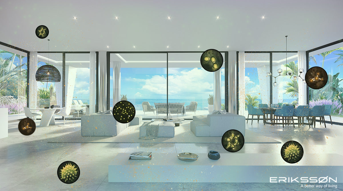 - Vermindert pollen, virussen en nare luchtjes in de omgeving.